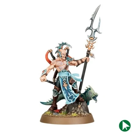 Ce kit plastique permet d’assembler un Asservisseur Akhélien, un habile Héros de soutien pour les Abyssaux Idoneths. Portant une tenue flottante d’aristocrate en exil, ce noble voyageur emporte des armes exotiques et est accompagné d’une murène gueule d’acier. Au combat, l’Asservisseur Akhélien est un excellent choix pour diriger une petite force d’hilotes et Écumeurs Namarti, ou les appuyer sur la ligne de front dans une armée plus grande. L’Asservisseur peut changer de posture de combat, chacune lui offrant différentes aptitudes – ainsi qu’aux unités de Namarti à proximité – lui permettant de s’adapter aux courants changeants de la guerre.