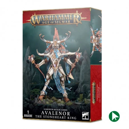 Avalenor, the Stoneheart king est mi-monstre, mi-héros, et une véritable force de la nature! Capable de réduire en miettes n’importe quel adversaire, ce champion alarith fait également un excellent commandant d’armée pour les Lumineth Realm-lords, en entravant les actions adverses tout en magnifiant les capacités de l’Alarith Stoneguard à proximité.