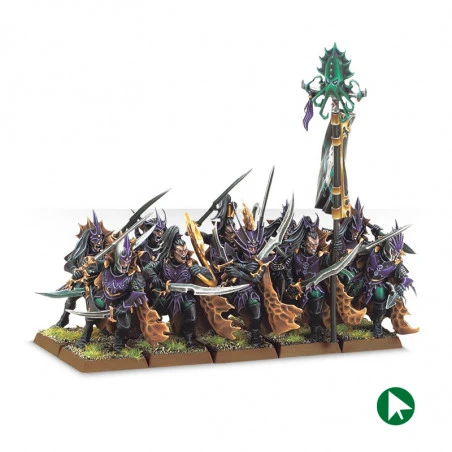 Ce kit plastique contient 10 Black Ark Corsairs à assembler avec une combinaison de lames perfides, de coutelas dentelés et d’arbalètes de poing à répétition. Il inclut les options de Reaver, de porte-étendard et de sonneur de cor. Figurines fournies avec des socles carrés de 20mm.