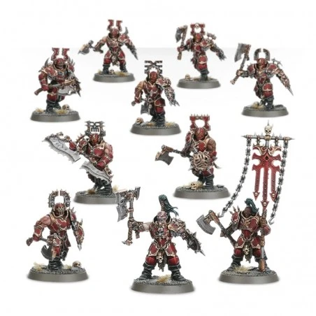 Ce kit plastique vous fournit tout le nécessaire pour monter dix Blood Warriors. Il propose de nombreuses options de personnalisation, chaque figurine pouvant recevoir soit une hache Gore et un poing Gore, soit une paire de haches Gore. Une des figurines peut devenir un Chaos Champion doté d’une hache encore plus impressionnante: c’est vraiment un kit fait pour les amateurs de haches! Une autre figurine peut être munie d’une arme spéciale améliorée, le glaive Gore, et une autre encore peut devenir porte-icône. Comprend dix socles ronds Citadel de 32mm.