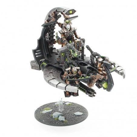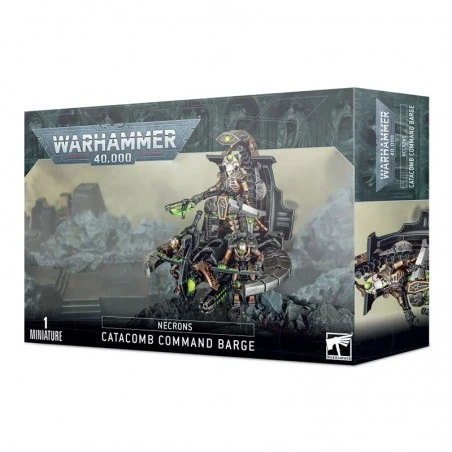 Ce kit plastique contient 84 pièces, deux tiges volantes Citadel, un socle volant Citadel de 60mm, un socle rond Citadel de 32mm et deux planches de décalcomanies Necrons, permettant d’assembler une Necron Catacomb Command Barge ou une Annihilation Barge.