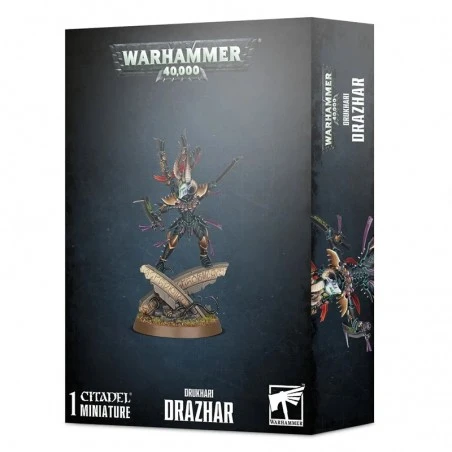 Ce kit est fourni en 16 composants plastique plus un socle rond Citadel de 40mm. Les règles pour jouer Drazhar dans les parties de Warhammer 40,000 se trouvent dans Éveil Psychique: L’Essor du Phénix.