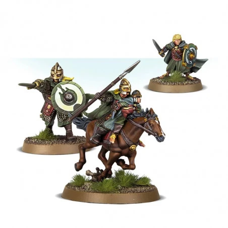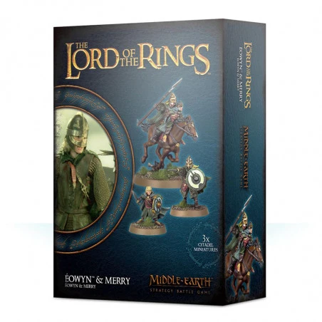 Ce kit plastique contient les composants nécessaires pour assembler Éowyn et Merry, aussi bien à pied qu’à cheval. En version montée, vous avez l’option de retirer Merry pour ne laisser qu’Éowyn. À pied, Éowyn porte une épée et un bouclier, auxquels s’ajoute un javelot quand elle est à cheval. Merry porte l’uniforme d’un Écuyer du Rohan et il a lui aussi une épée et un bouclier. Les deux versions d’Éowyn peuvent être assemblées tête nue avec sa chevelure d’or exposée, ou avec un heaume sous son identité de Dernhelm.