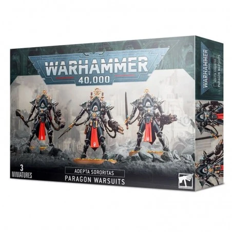 Ce kit plastique en 179 composants permet d’assembler trois Exo-harnais Parangon, et il est fourni avec 3x socles ronds Citadel de 50mm. Le kit comprend les options pour équiper les exo-harnais de deux armes de mêlée différentes, de trois armes de tir différentes, de deux armes de carapace différentes, en plus de têtes casquées ou nues au choix.