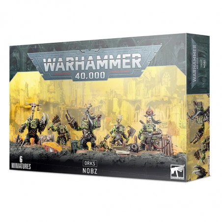 Cette boîte contient 5 Ork Nobz en plastique à monter. Ce kit en 104 composants propose 10 variantes de tête, cinq moitiés avant de torse différentes et cinq variantes de corps pour vous permettre d’assembler une bande à l’aspect unique.