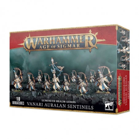 Les Auralan Sentinels forment des unités de choix pour votre armée de Lumineth Realm-lords, capables de cribler l’ennemi d’une grêle de flèches. Investies de puissance magique, elles ne font qu’une bouchée des ennemis même nantis d’une armure lourde. Par ailleurs, la lanterne gerfaut-oracle interdit à quiconque de se soustraire à leurs salves.